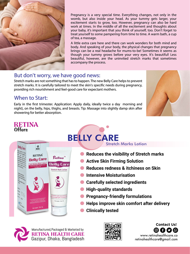 Belly Care Stretch Marks Lotion is specially designed to address stretch marks associated with pregnancy, weight gain, or bodybuilding. This lotion is formulated to promote skin health and elasticity, providing support during times of physical change.